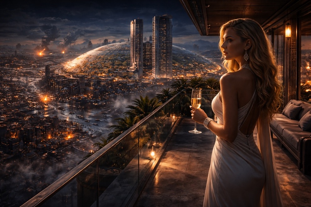 Later that evening, as Emilia stood on her balcony, watching the city glitter below her, she reflected on the perfect order Arcadia had achieved. It had cost the world everything, but it had worked. The elite had become gods, isolated from the suffering, the suffocating heat, and the apocalyptic collapse that had befallen the Earth.